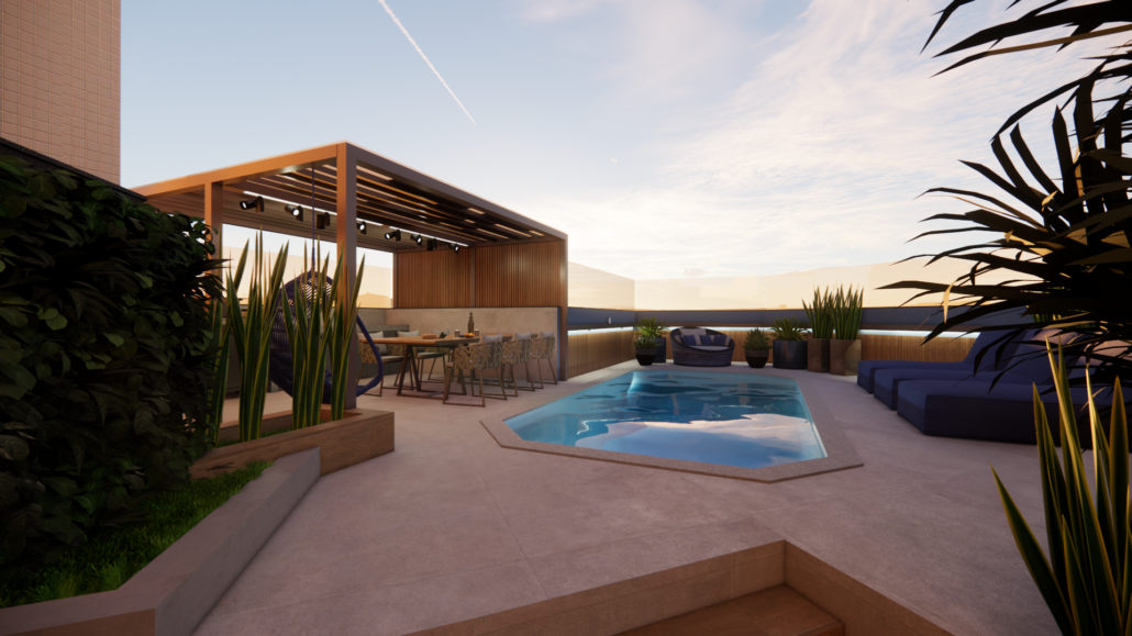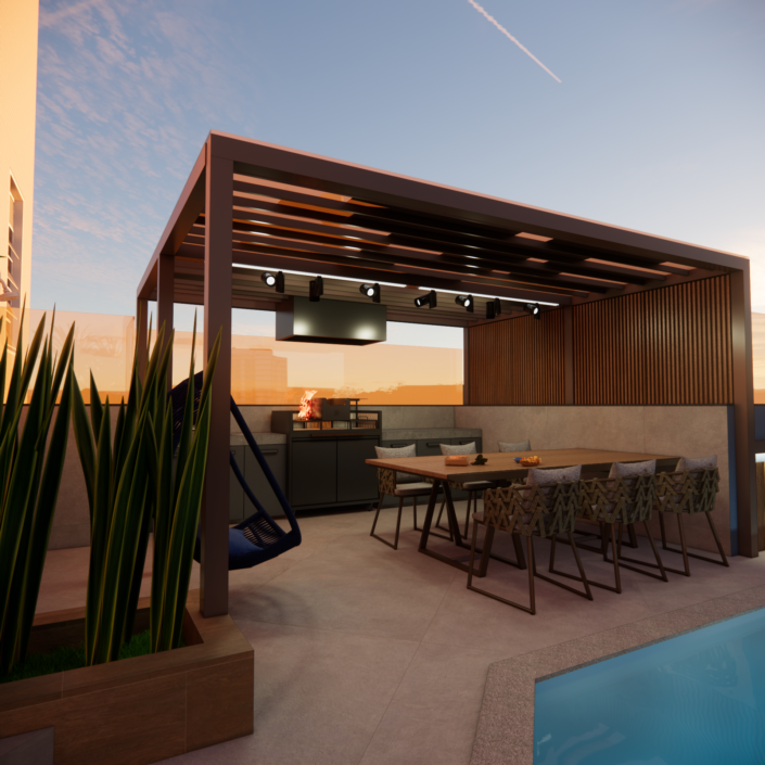 Espaço externo pensado para receber os amigos e contemplar o pôr do sol!